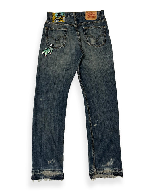 Blue Distressed Bop Patches Denim