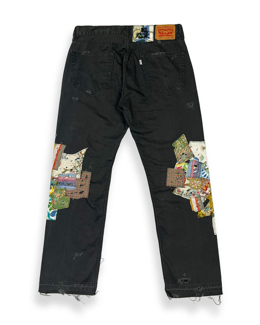 Black Distressed Bop Patches Denim